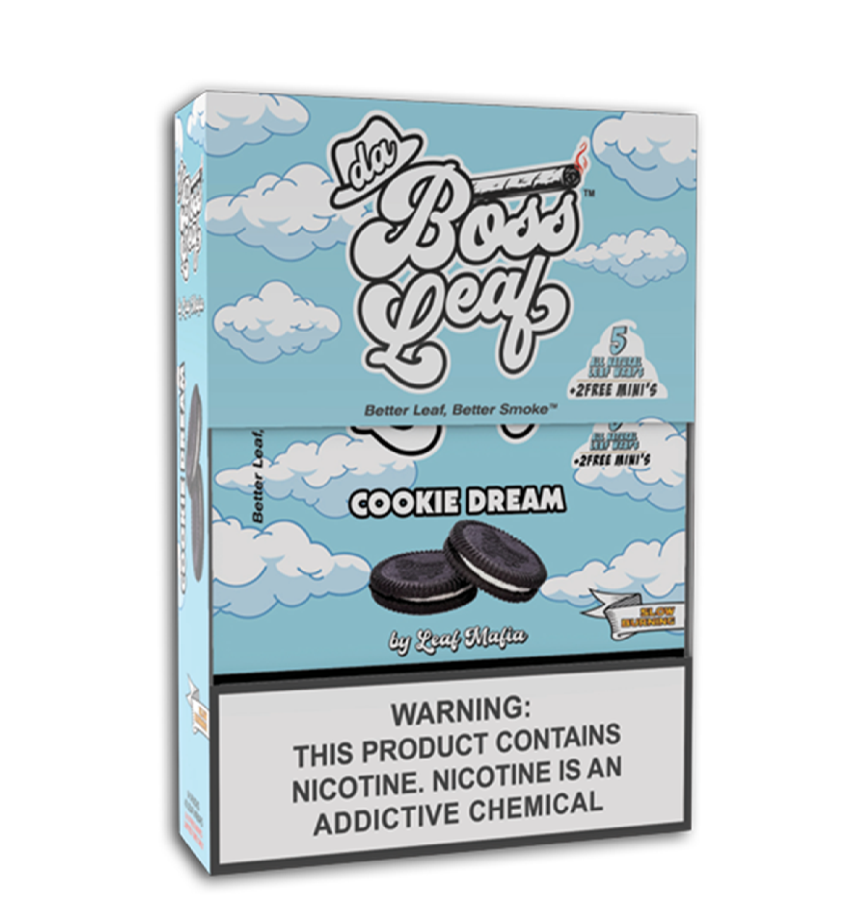 Savor the timeless sweetness with Da Boss Leaf Sweet Classic, a premium offering from Leaf Mafia. Each pack includes five high-quality all-natural, slow-burning leaf wraps, along with two complimentary mini wraps, providing an extended and indulgent smoking experience.